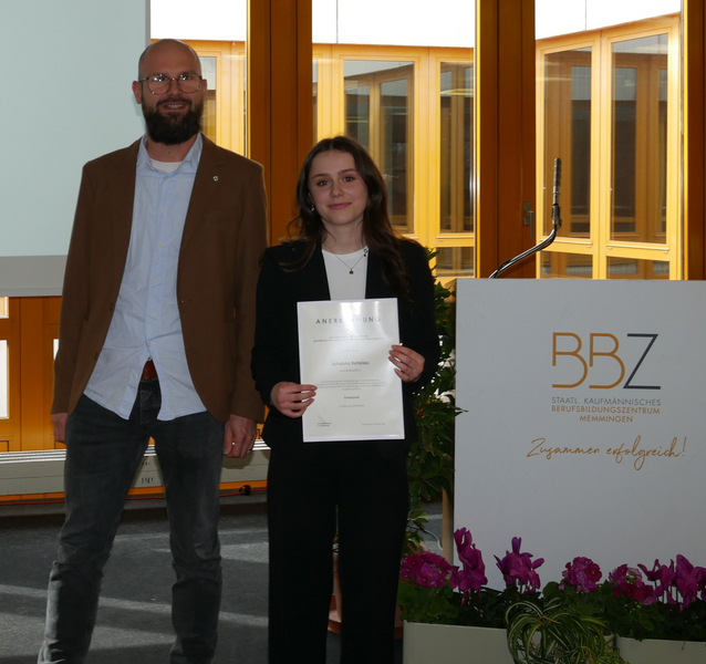 Fünf Abschlussschülerinnen und Abschlussschüler der Staatlichen Berufsschule II des BBZ Jakob Küner erreichten einen Notendurchschnitt von 1,5 oder besser und wurden im Rahmen der Bestenehrung mit dem Staatspreis der Regierung von Schwaben ausgezeichnet. Drei Industriekaufleute sowie eine Zahnmedizinische Fachangestellte und eine Medizinische Fachangestellte erhielten bei der diesjährigen Abschlussfeier einen Staatspreis. Stolz gratulierten der Schulleiter Albert Spitzner, Oberbürgermeister Jan Rothenbacher, Landrat Alex Eder und die Regionalgeschäftsführerin der IHK Schwaben Annalena Richter in ihren Grußworten den insgesamt 69 erfolgreichen Absolventinnen und Absolventen bei dieser Feierstunde.